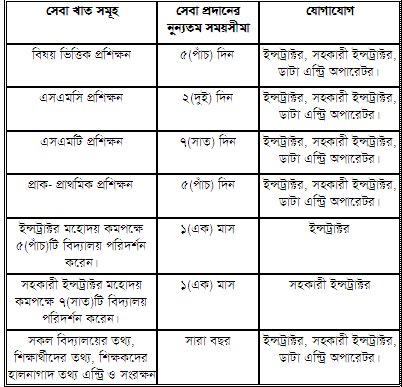 সেবার তালিকা